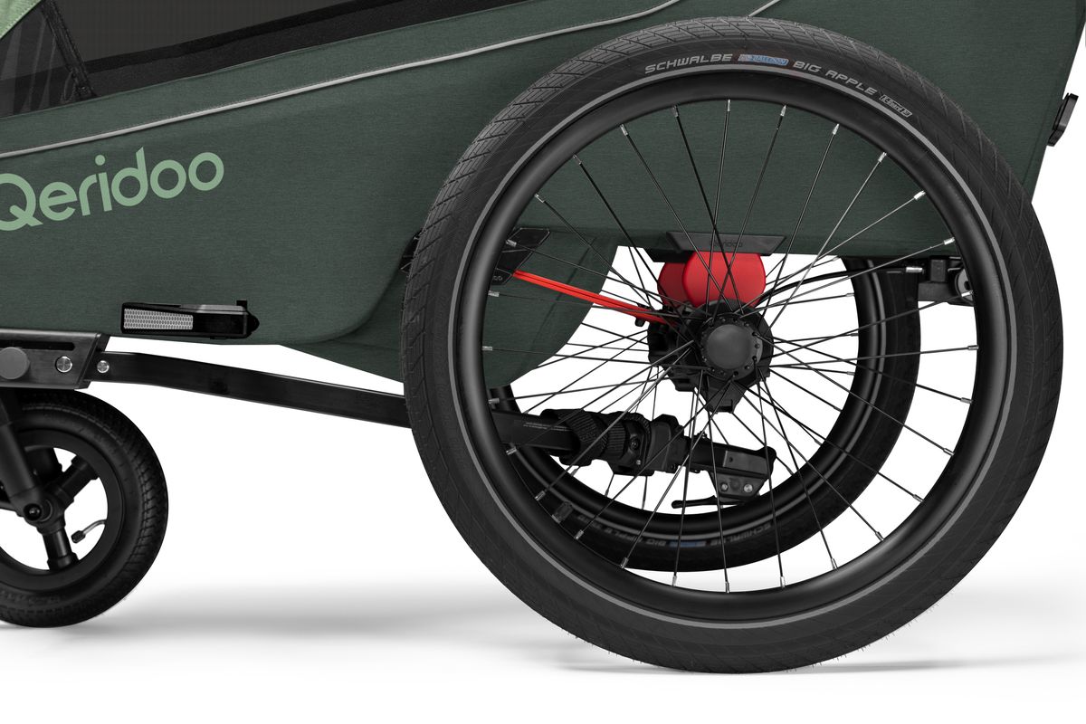 Der Qeridoo Kidgoo 2 erfüllt sämtliche sicherheitstechnischen Anforderungen der Europäischen Sicherheitsnormen EN 15918:2011+A2:2017 (Fahrradanhänger) und EN 1888-2:2018+A1:2022 (Kinderwagen).