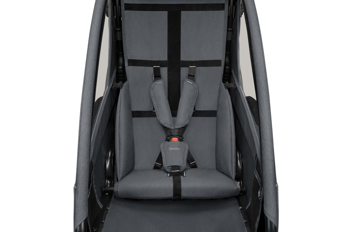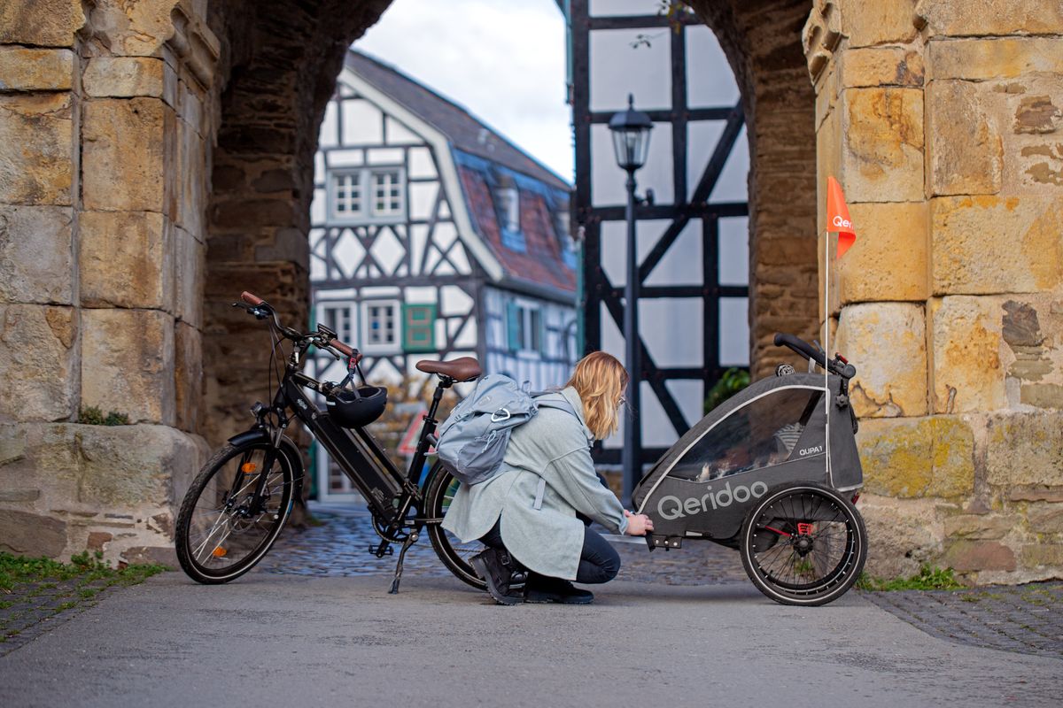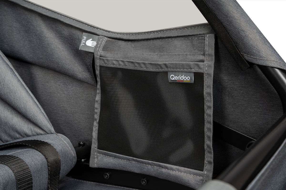 Rahmen deines Qeridoo Kinderfahrradanhängers (meist im Kofferraumbereich).