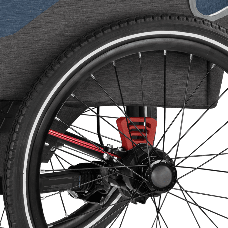 Das 360° luftgefüllte Buggyrad sorgt für einen ruhigen Lauf und eine gute Wendigkeit. Stellst Du das Rad mit dem Betriebsartenschalter fest, ermöglicht der Geradeauslauf unbeschwertes Walken in leichtem Gelände.