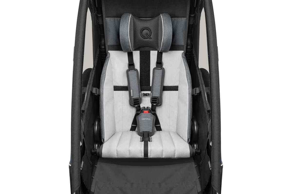 Wir als Hersteller empfehlen Ihnen, während der Fahrt einen Helm oder alternativ die höhenverstellbare Qeridoo Kopfstütze zu nutzen - für mehr Sicherhalt und Halt.