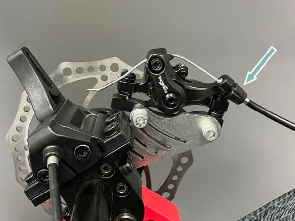 • Betätige den Bremshebel, um zu überprüfen, ob beide Seiten der Scheibenbremse gleich stark bremsen.