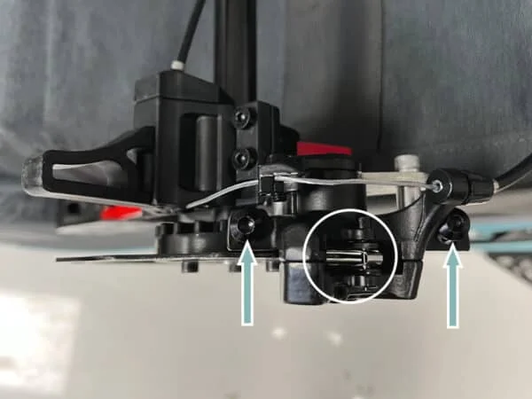 • Löse die beiden Schrauben am Bremssattel mithilfe eines Innensechskantschlüssels der Größe 5. Der Bremssattel lässt sich jetzt seitlich in der Position verschieben.