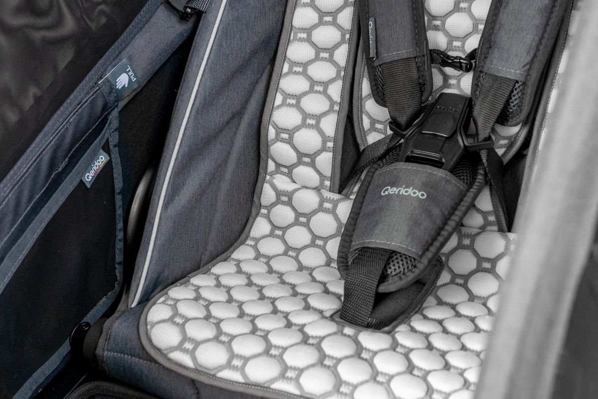 Die Qeridoo Einsitzer Sitzauflage Iceberg bietet Deinem Kind höchsten Komfort bei jeder Fahrt. Dank Coolmax®-Sitzfläche, atmungsaktivem Mesh-Gewebe und rutschfester Anbringung bleibt es auch an warmen Tagen angenehm kühl und luftig im Sitz. Universale Gurtschlitze machen die Auflage kompatibel mit allen Qeridoo Einsitzer-Fahrradanhängern.