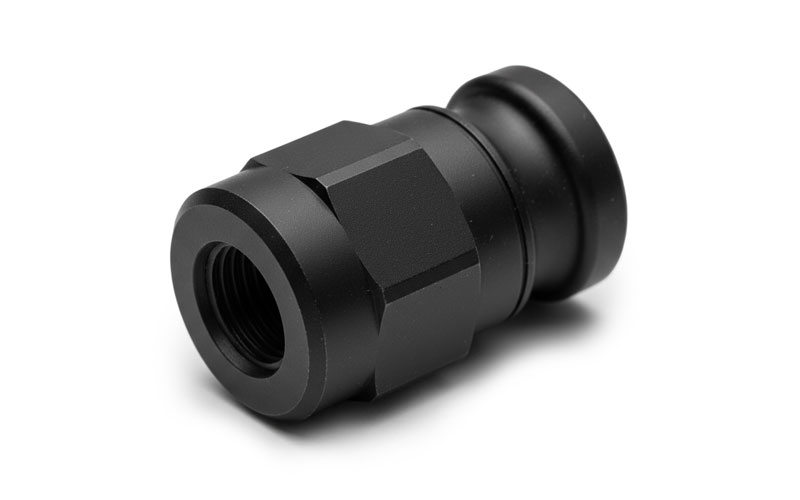 - Der Adapter muss mindestens sechs vollständige Gewindegänge auf die Achse geschraubt werden, um eine sichere Klemmung zu gewährleisten.